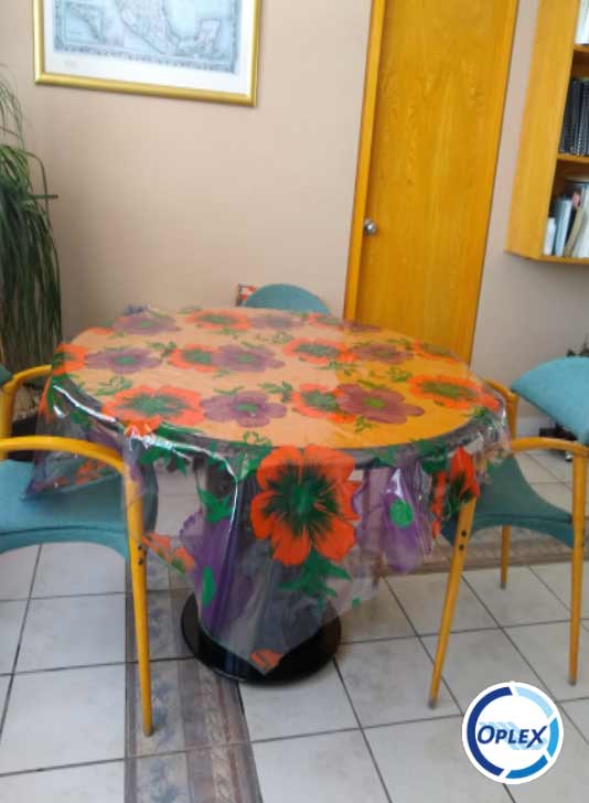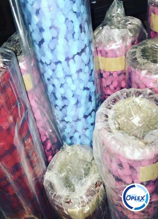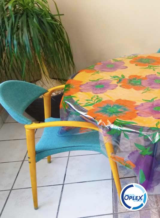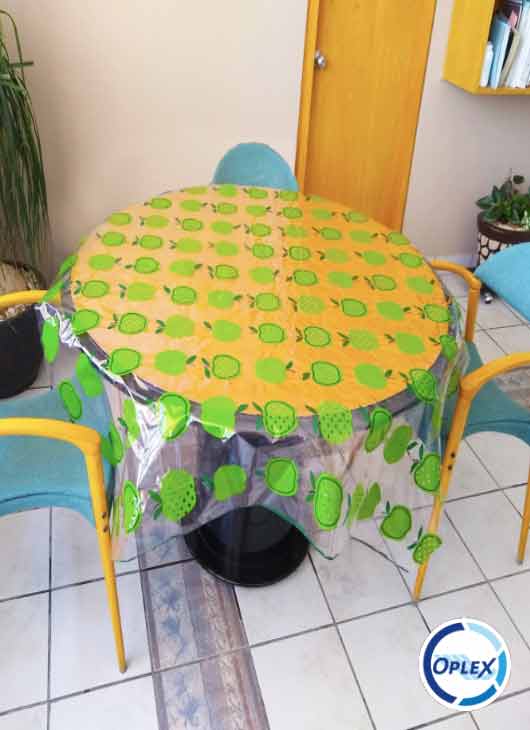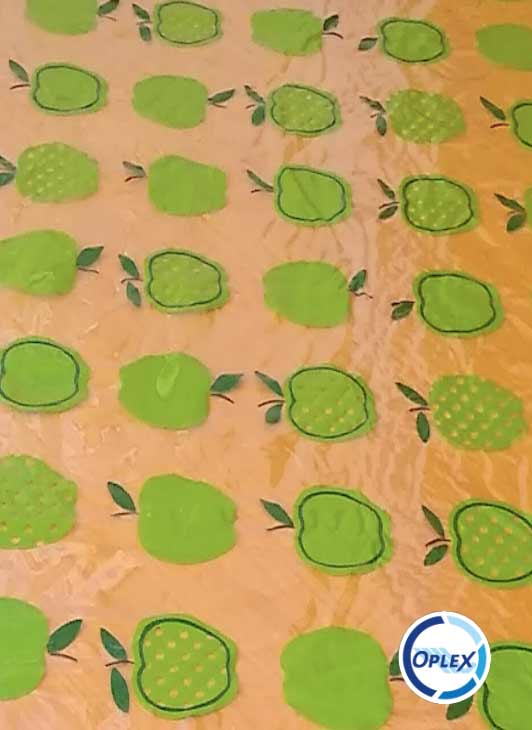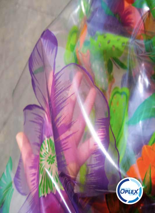 Película de PVC flexible, transparente, brillosa por ambas caras y con una impresión por un lado, que le da un toque único.
