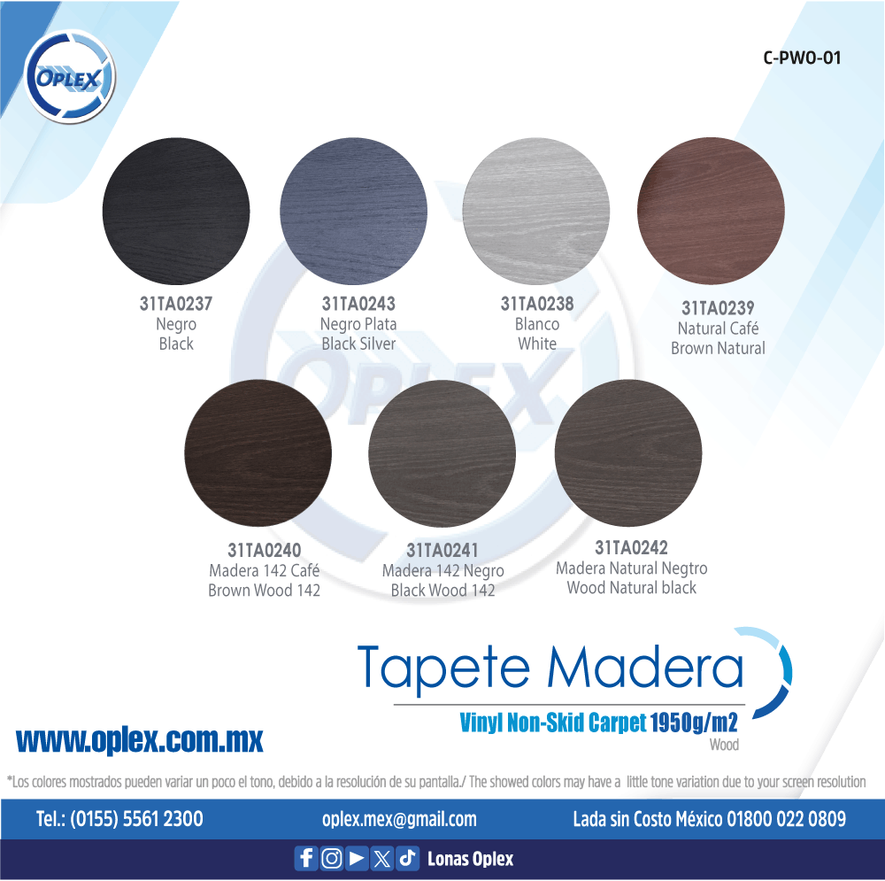 Los tapetes TRÁFICO PESADO de Oplex son la solución perfecta para cubrir toda un área determinada con un piso que guardará la integridad de tu infraestructura de los golpes y movimientos bruscos provenientes de aparatos o el intenso tránsito peatonal. Haz que tu negocio luzca profesional. Contamos con grabadoEspiga, Tachon, Nudos y Madera